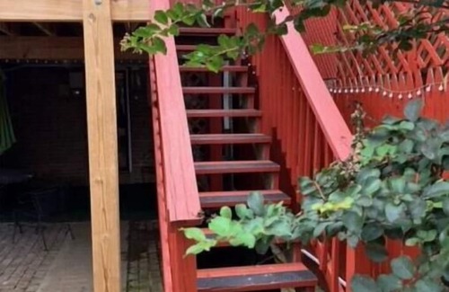 Guest must enter property through rear Alley Way. Address is labeled on rear gate. Guest must use shared driveway and shared brick patio platform......then separate house entrances to enter the property. Guest for Unit 2....this unit. Must climb wooden stairs (in pics) up to wooden deck (in pics) and use door coded key box. 1 vehicle only. Parking is 2 shared stacked parking spots (see pic). 1 parking spot for each unit.Soft sound is chimed if your car is blocked. Then car owner will move car.