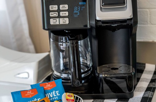There are two bedrooms, each with a queen bed and blackout curtains. The larger of the two rooms has a 43” TV as well so you can snuggle up to a good movie as you unwind. There is one bathroom, which was recently remodeled and boasts a great shower head that’s sure to help you get your day started the right way.