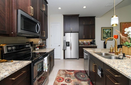 Stocked kitchen with stainless steel appliances and all essentials