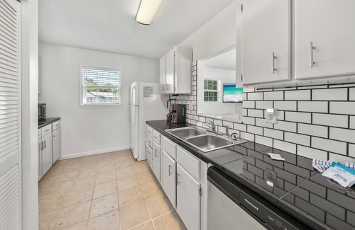 Welcome to Southern Aire, offered by High Tide R and R, is the perfect beach house for small families & couples! Just a short walk down the street to public beach access, Carousel grocery store and Thomas Donut! This home is equipped with a driveway that has ample space to park up to 4 vehicles or a combination of car/truck/recreational vehicle/boat!