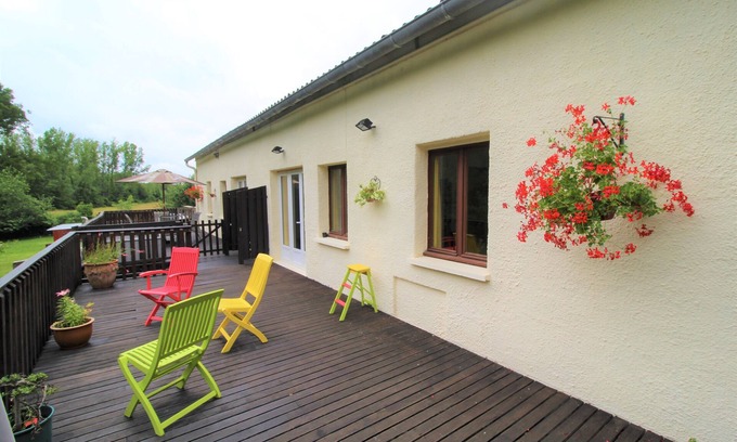 recently refurbished 2 bedroom guesthouse sleeping 6 people and a 2 bed guest house sleeping 4 people situated in 11 acers off gardens with 2 large fishing lakes this is the perfect place to wind down and relax. For the children the garden is a wide open space to play in safety, allowing parents a stress free holiday. This rental accommodation is a great place to get away from it all.
