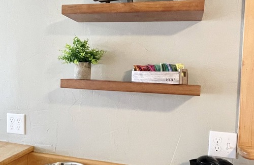 This unit has all the creature comforts of home including a coffee maker with coffee provided to fuel your day, kettle with an assortment of teas and honey, light breakfast items and a full sized washer & dryer. It also has a new 55 inch tv with netflix, hulu, amazon prime and more.