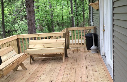 Outside you will find deck overlooking the Baldwin River with a table and bench seating as well as a gas grill and a firepit. The Baldwin River is a blue-ribbon trout stream open to fishing April 30-September 30th.