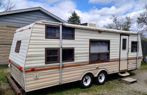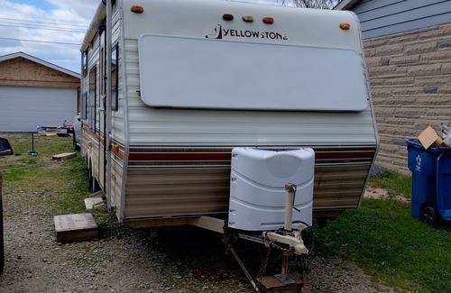 Everything original like new Charming 1985 Yellowstone century mobile home in marvelous Indianapolis area on the backside of a school, just minutes away from the Indianapolis airport and the Indianapolis motor speedway with AC, heat, wifi, water hookup, electric hookup and access to washer and dryer. Very quiet and safe neighborhood. Small dogs or cats are welcome. One queen size bed and 2 twin size bunk beds. Can sleep 4 comfortably. I can also provide a ride to and from places for a small fee to and from places to show you around to the great food and safe places to be! Awning works and can provide enclosed canopy or fire pit for outside activity. It has new tires on it. and it is insured so it can be rented to take to places if you want to pull up to tow it where you want. I will provide the hitch for connection that also has the sway bar connecters for easy handling during the tow. Same price as staying in it for the night. Here's some more things below.
