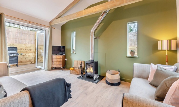 Living area: Smart TV, Woodburner, Patio Doors Leading To Garden