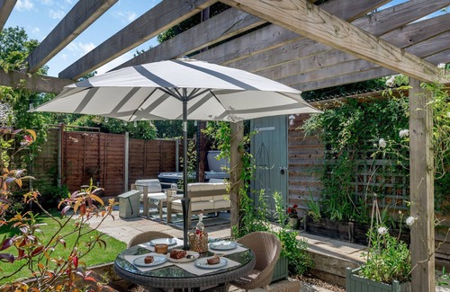 A gem of a cottage nestled within mature gardens and offering a welcome pack and its very own hot tub to enjoy. Just a short drive from the town of Beccles for eateries and shops.. 2 steps to entrance.