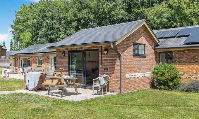 Beautifully renovated Victorian barn with a private hot tub, patio, and underfloor heating. Set in tranquil Dorset countryside with access to a pool, games room, fishing lakes, and family attractions—perfect for stylish, restful escapes.. All on the Ground Floor: