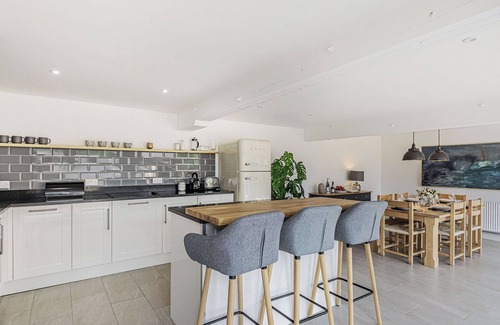 Shower Room: Cubicle Shower, Toilet. Biomass central heating, electricity, bed linen, towels and Wi-Fi included. Initial fuel for wood burner included; remainder available locally. Welcome pack. Enclosed back garden with patio, sitting-out area and garden furniture. 2 dogs welcome. Private parking for 4 cars. No smoking. Please note: 2 steps in garden.. Situated in the rural and quiet village of Braunston in Rutland is this gorgeous and very spacious barn conversion, The Granary. It is perfect holiday accommodation whether you are staying for a few days or a week or two. The large living room has stunning, double-height ceiling showing off the beautiful beams and enjoys a cosy wood burner for those cooler evenings. On the way to the spacious kitchen/dining room, you will pass through the study, the perfect place where you can respond to those all-important emails! The split-level kitchen/dining room is well equipped and is the social hub of the property. The ground floor also boasts a separate utility/boot room and toilet. At the top of the stairs, you are greeted by two large kingsize bedrooms (one with an en-suite bathroom) and a separate shower room. You will not be disappointed with your choice of accommodation!