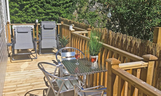 Ramblers Retreat is a high specification caravan with private decking, overlooking a pond in a peaceful and private holiday park with easy access to Cockermouth and Keswick. 3 steps to entrance.