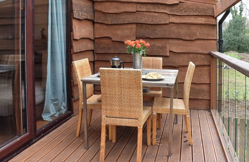 Shower Room: Cubicle Shower, Toilet. Gas central heating, electricity, bed linen, towels and Wi-Fi included. Initial logs for wood burner included. Welcome pack. Balcony with outdoor furniture and wood burner. Private parking for 2 cars. No smoking.. A steam train enthusiasts paradise. An authentic wooden lodge set on one floor tucked away giving that feel that you are nestled within woodland but also within close proximity to the Devon Expressway and many local attractions including Buckfast Abbey, South Devon Railway, Otter Sanctuary and many more. A stunning interior with wooden floors throughout. The open plan living area gives it a spacious, but warm feel so you can enjoy all year round. Sit back and dine on the balcony with its wood burner and dining area giving that feeling of an extra room, with views over the owner’s garden. Blending contemporary and traditional throughout, creating an ideal holiday retreat. With two bedrooms, one with a kingsize bed, the other offering two single beds and both with wardrobes, a dressing table and wall-mounted hairdryers. The open plan living/kitchen/dining room brings all the family together to dine and watch entertainment along with a electric log effect fire giving that log cabin feel.