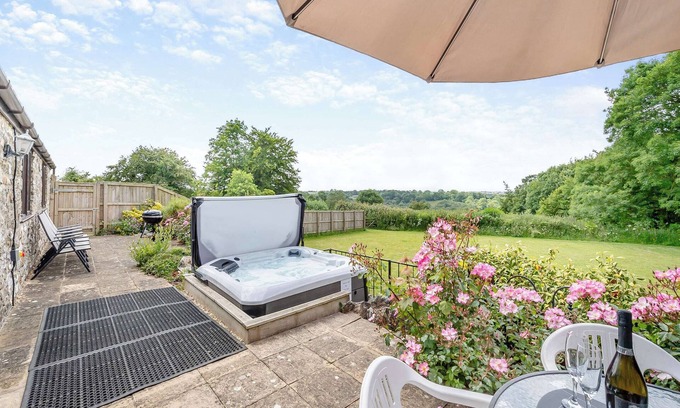 A beautiful cottage with a hot tub and enjoying stunning views of the rolling hills and valleys beyond, the perfect place to escape.. All on the Ground Floor: