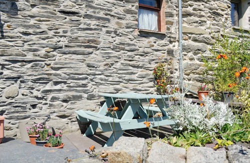 Shower Room: Cubicle Shower, Toilet. Electric storage heaters, electricity, bed linen and Wi-Fi included. Initial logs for wood burner included. . Patio with garden furniture. On road parking. No smoking. Please note: There are drops in the patio area.. This delightful, character, end terraced, holiday cottage is in the pretty village of Dolwyddelan in the Snowdonia National Park. It retains its original charm with inglenook fireplace, wood burner and exposed beams, and has a rear garden down a path located behind other cottages, as well as a sunny raised patio with a small courtyard which is accessed off the road to the property.
