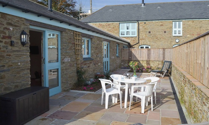 Bathroom: Bath, Cubicle Shower, Heated Towel Rail, Toilet. Oil central heating, electricity, bed linen, towels and Wi-Fi included. Initial logs for wood burner included. Travel cot and highchair. Enclosed courtyard garden with sitting-out area and garden furniture. Private parking for 2 cars. No smoking.. This detached, ground floor barn conversion provides light and airy accommodation with vaulted ceilings, adjacent to the owner’s home. The Hayloft is idyllic for a small family who are looking for a contemporary property, which is also close to many beaches, and is situated in the heart of South Devon.