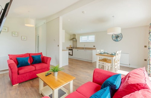 Luxury lodge with one master double bedroom with en-suite shower room and flatscreen TV with a walk-in wardrobe. Second bedroom with twin beds. Family bathroom comprising of bath and overhead shower. Beds made up for your arrival. Open plan lounge/kitchen/dining area with dining table and 4 chairs. Includes cooker, built in microwave, wine fridge, fridge freezer, dishwasher, washing machine and Electric Log Burner fire. Enclosed decking area with garden furniture. Outdoor hot tub. There are 2 parking spaces directly next to the lodge.
