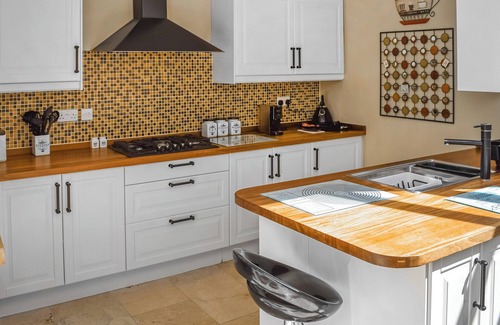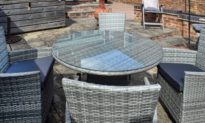 At Valentine’s, marble floors grace the ground floor, setting a tone of sophistication and elegance. The spacious living room features comfy sofas, a Smart TV, and a wood burner for cosy evenings, making it a perfect spot to unwind after a day of exploration. The well-equipped kitchen, complete with two fridges, adjoins a sunny breakfast space in the conservatory, ideal for leisurely morning meals. A utility room offers practical storage for muddy boots and clothes, ensuring convenience after countryside walks. Outside, a small courtyard provides seating for warm evenings under the stars, perfect for al fresco dining or simply relaxing with a glass of wine.