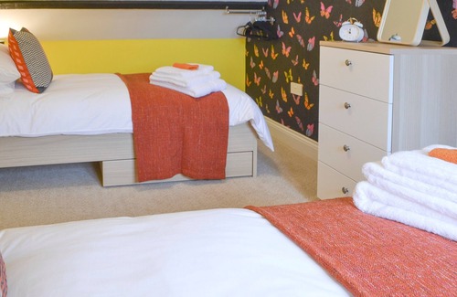 Bedroom 2: With twin beds and sloping ceiling.