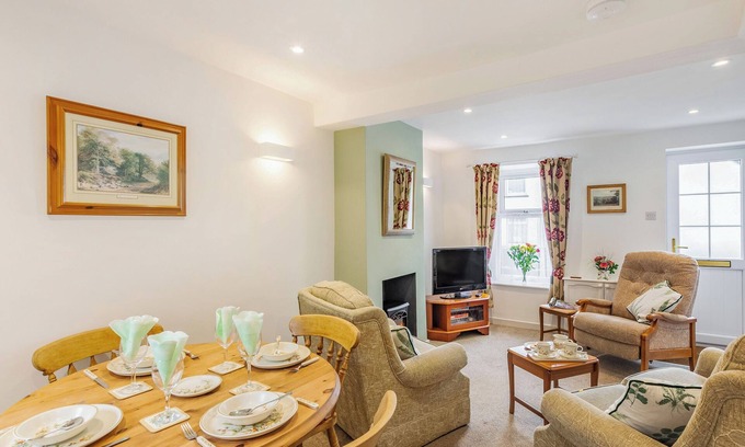 Bedroom 2: 2 x Single (3ft) Beds. Electric central heating, electricity, bed linen, towels and Wi-Fi included.. Garden with sitting-out area. On road parking, 1 yard away from property. No smoking. Please note: Holidaymakers only.. Quince Cottage is a charming terraced cottage offering accommodation over 3 floors, ideal for a great relaxing holiday with family or friends. The ground floor offers a relaxing living/dining room, a well-equipped kitchen and rear courtyard with sitting area. The first floor has a family shower room, dressing room and double bedroom with the second floor offering a twin room. Due to steep stairs, this cottage may not be suitable for guests with limited mobility, or very young children.