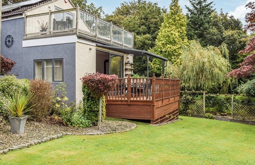 Bedroom 2: Kingsize (5ft) Bed, Single (3ft) Bed (Flexible Sleeping Only), Freeview TV, Patio Doors Leading To Balcony Ensuite: Bath With Shower Over, Toilet. Electric central heating, electricity, bed linen, towels and Wi-Fi included. Initial logs for wood burner included. Highchair. Summerhouse with washing machine and freezer. Lawned garden with summerhouse and barbecue. Hot tub for 4 (private). Electric car charging point, at cost. Private parking for 2 cars. No smoking. Please note: There are 4 steps in the garden. The hot tub must not be used after 10.30pm. . The Brackens Annexe is a delightful, detached two-storey accommodation set in the serene countryside of Manley, near Frodsham. Surrounded by beautiful gardens, this peaceful retreat offers far-reaching views of rolling fields from two south-facing verandas. Nestled within an acre of lush greenery, the property boasts various seating areas for relaxation and a traditional wood-fired hot tub, covered for use in all seasons. There’s also a charming summer house in the garden, perfect for quiet moments of reflection. While the friendly owner lives onsite, guests are assured complete privacy, with exclusive use of the gardens.
