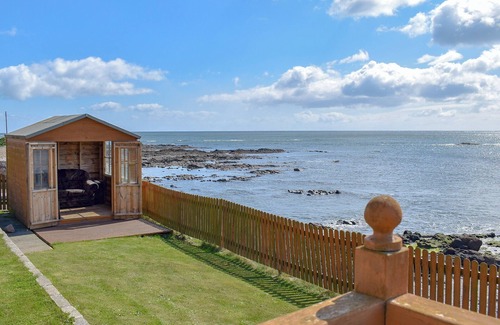 Bedroom 2: 2 x Single (3ft) Beds. Economy 7 heating, electricity, bed linen, towels and Wi-Fi included. Welcome pack.. Enclosed, lawned garden with terraced area, garden furniture and summer house. Bike store. Private parking for 1 car. No smoking. Please note: The sea is immediately beyond the rear garden.. Set in a perfect location in the stunning coastal fishing village of Johnshaven, Seashore Retreat is a lovely cottage set right on the sea front. It truly could not have a better location. The stunning view can be enjoyed all year round from the comfort of the garden summer house. With patio doors leading from the living room right to the decking, there are no shortage of vantage points to watch the waves crashing against the rocks. Both bedrooms are rear facing, which means you can drift off to sleep whilst listening to the sea right outside the window. Johnshaven is a quaint little village on the North East Coast of Scotland, approx a 15-minute drive from both Stonehaven and Montrose. Famous for both fishing and its harbour, it is a beautiful place to relax and enjoy a coffee, whilst taking in the magnificent views.