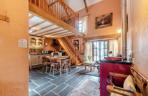 Living room: Freeview TV. Oil central heating, electricity, bed linen, towels and Wi-Fi included. Travel cot and highchair. Welcome pack. Back garden with sitting-out area, garden furniture and barbecue. Electric Vehicle Charging Point. Private parking for 2 cars. No smoking.. Tucked away in the heart of Llanwenog, next to the picturesque 12th-century church, Y Cartws is a beautifully converted holiday offering comfort and countryside charm. The open-plan kitchen diner is well-equipped with a dishwasher, electric hob and oven, aga, fridge, freezer, coffee machine, and microwave, making it a joy for home cooking.