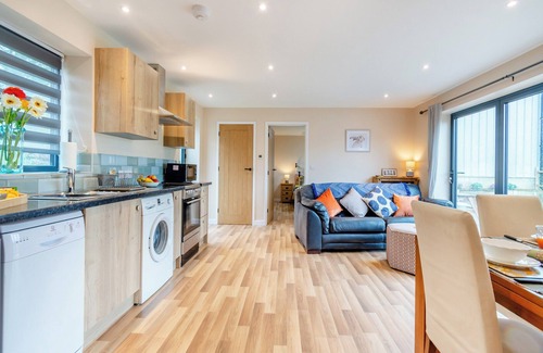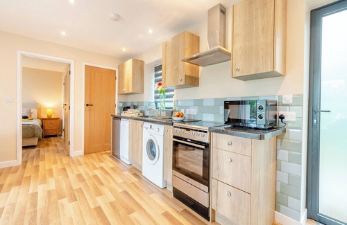 Bedroom 2: 2 x Single (3ft) Beds Ensuite: Cubicle Shower, Toilet. LPG underfloor heating, electricity, bed linen, towels and Wi-Fi included. Welcome pack. Back garden with patio and BBQ. 1 small dog welcome, to be kept on a lead at all times (working farm). Private parking for 2 cars. No smoking.. This holiday home is a converted tractor shed, situated on a working farm adjacent to the owner’s property and surrounded by countryside. The Tractor Shed has free parking for two cars and ramp access to the front door with self-check-in. When you enter the property, you are greeted by a fabulous open plan living space with a dining area and fully equipped kitchen. This area boasts lots of natural light that floods through the bi-folding doors which lead to the patio area, where you have a lovely sitting area, barbecue and a view to the field opposite. This is the perfect spot to enjoy breakfast or your evening meal while taking in the peace and tranquillity of the countryside. There are two large bedrooms, both featuring en-suite bathrooms with wall to ceiling tiles and decorated to a high standard. After a long day exploring the Sussex and Kent countryside, either one of these bedrooms will be a luxurious comfortable space to sleep.