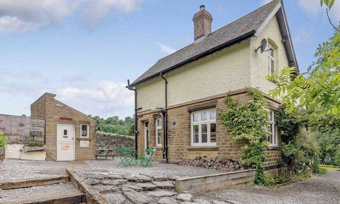 Bathroom: Bath, Walk-In Shower, Heated Towel Rail, Toilet. Oil central heating, electricity, bed linen, towels and Wi-Fi included. Initial logs for wood burner included. Welcome pack. Large garden with patio, terrace, garden furniture and firepit. Private parking for 3 cars. No smoking. Please note: There is a fenced pond in the garden. There are quite a few steps upto the property (as shown on the property pictures) and you cannot drive your car to the front door.. Once the original station masters house and built in 1880, Station House nestles in a beautiful valley overlooking amazing countryside, and offers a unique position directly onto the Monsal Trail in the Peak District National Park. There are several photos in the house that show the property with steam trains running by. It lies on the disused Manchester to London line with the other station buildings and Victorian railway bridges next to the cottage. The property has railway themed signs and is mentioned in several railway history books (these are also in the cottage). This property is ideally located with local amenities nearby, including a café only 50 metres away. A truly fantastic house full of its own unique charm and character with great care and attention going into every detail. Station House commands stunning views from almost every window, enhanced with attractive original features and quality furnishings. Outside you can enjoy the beautiful landscaped gardens with places to relax and enjoy this truly unique property at any time of the year.
