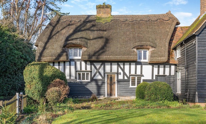 Bedroom 2: Double (4ft 6in) Bed. Gas central heating, electricity, bed linen, towels and Wi-Fi included. Welcome pack. Front garden with sitting out area (shared with neighbouring property). Private parking for 2 cars. No smoking.. Escape to the charming village of Much Hadham and experience the epitome of rustic tranquillity in this delightful 16th century two-bedroom thatched cottage. Nestled in the heart of the Hertfordshire countryside, this idyllic retreat promises a perfect holiday getaway. As you approach the cottage, its thatched roof and traditional timber façade immediately capture the essence of a bygone era.