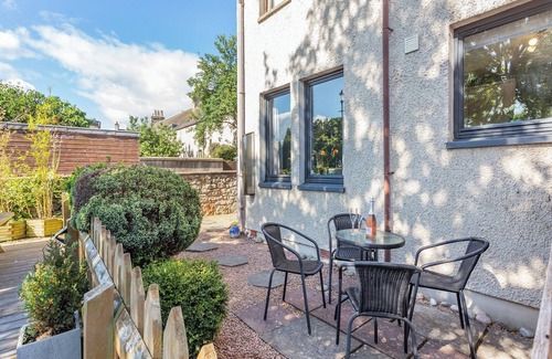 Shower Room: Cubicle Shower, Toilet. Gas central heating, electricity, bed linen, towels and Wi-Fi included. Welcome pack. Back garden with sitting-out area and garden furniture. Private parking for 1 car. No smoking.. Welcome to Riverside Apartment a beautiful 2 bedroom ground floor apartment in the picturesque seaside town of Nairn, Scotland. This delightful property is ideally situated just a 5-minute stroll from the pristine sandy shores of Nairn Beach and a mere 10-minute walk from the town centre. Nestled in a tranquil residential neighbourhood, this apartment offers the perfect blend of coastal serenity and urban convenience.