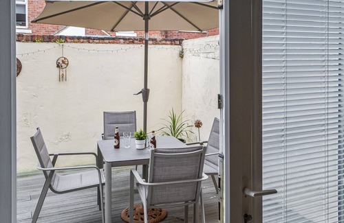 Only a two-minute walk from the seafront, this cosy coastal home is perfect for family getaways, seaside fun, close to cafes, pubs and shops.. Step to entrance.