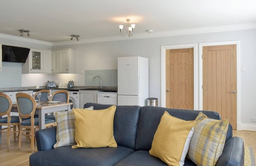 Kitchen area: With electric oven, induction hob, microwave, fridge/freezer, food mixer, dishwasher and washer/dryer.