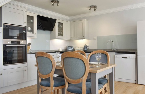 Tastefully decorated, the living space is open plan with beautiful views from the large picture windows. Two smart leather sofas to curl up on and a wall mounted curve TV, complete with Netflix and Amazon, enabling you to connect to your account to stream your favourite movies and box sets. The newly fitted kitchen is equipped with all modern appliances and has everything you need to rustle up a tasty brunch or hearty supper.