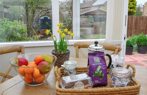 Bathroom: With shower over bath, toilet and heated towel rail.. Oil central heating, electricity, bed linen, towels and Wi-Fi included. Initial fuel for open fire included. Payphone.. Enclosed garden with patio and garden furniture. Private parking for 1 car. No smoking.. This charming terraced holiday cottage is in the pretty village of Norham, 8 miles from Berwick-upon-Tweed. Very comfortably furnished, it has a peaceful garden and a bright, sunny conservatory ideal for eating relaxing meals in, or simply unwinding in with a good book and a glass of something delicious. The village has a couple of pubs, a local shop and an excellent butcher, and there are wonderful walks just moments away alongside the glorious River Tweed, which marks the border between Scotland and England. The area is famous for its salmon fishing, with some of the best beats nearby. The village is rich in Border history: historic St Cuthbert’s Church is just behind the cottage and the main street is dominated by the ruins of Norham Castle set high above the river. This is a wonderful base from which to explore the Scottish Borders and north Northumberland. Holy Island and the Farne Islands make for great days out, or Edinburgh is just an hour away by train from Berwick for a hassle-free day in the city. Beach 10 miles. Shop 330 yards, pub 55 yards, restaurant 8 miles.