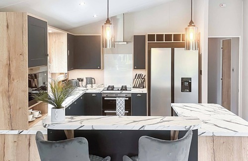 A luxurious lodge overlooking nestled in the picturesque Worcestershire countryside. The perfect place for a relaxing retreat. One master king with en suite shower, and separate twin bedroom. A family bathroom with bath and overhead shower. A spacious fully furnished open plan kitchen/dining/lounge. The lodge is complete with a veranda and private hot tub. No pets.
