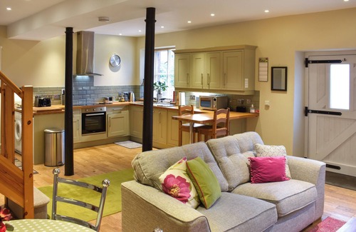 The heart of Barn End is its inviting open-plan kitchen, living and dining area. The fully equipped kitchen, boasting modern conveniences to inspire your inner chef. Whether you’re whipping up a feast or simply brewing a morning coffee, this space caters to your every need. The living room is a cosy retreat, featuring a large Smart TV and a warming wood burner. It’s the ideal spot to unwind after a day of exploration, whether you choose to curl up with a book, savour a glass of wine, or enjoy the soothing glow of the fire.