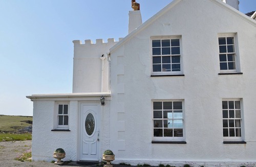 This semi-detached cottage is positioned on the cliff tops of Rhoscolyn head, with a stunning outlook over the dramatic shoreline and distant views of the Snowdonia Mountains.. 1 step to entrance.