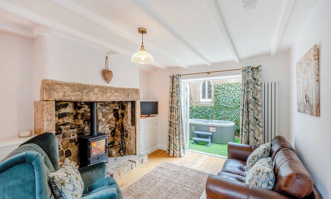 Shower Room: Cubicle Shower, Toilet. Gas central heating, gas, electricity, bed linen, towels and Wi-Fi included. Initial fuel for wood burner included. Welcome pack. Back garden with patio, sitting-out area and garden furniture. Hot tub for 2 (private). On road parking. No smoking.. Nestled on the outskirts of Riding Mill, just 3 miles from the picture postcard town of Corbridge, sits Thirlwell Cottage, a Grade II listed stone haven offering a luxurious retreat for up to three adults and their furry companions. This holiday cottage beckons with its timeless charm and modern comforts, promising an unforgettable stay in the heart of Northumberland. The cottage adjoins a church with Sunday morning service.