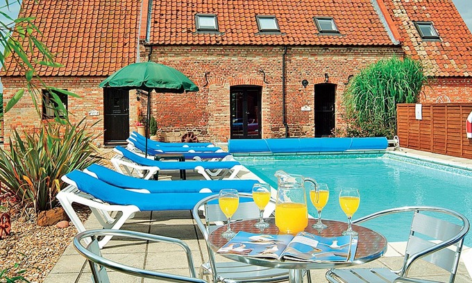 Bathroom: with bath, and toilet. . Cot. . In the timeless, open landscape of the Norfolk Fens, Thorpland Manor Farm offers visitors a wonderfully peaceful rural setting and shared enjoyment of a fine range of facilities including a heated open air swimming pool. Skilfully and lovingly converted from handsome farm buildings, and carefully retaining traditional features in their beamed interiors, all seven cottages provide the highest quality of comfort. Set near the owners’ 17th century farmhouse on a working farm, they all boast their own sitting out areas as well as access to the farm grounds, where coarse fishing and farm walks make this the perfect spot in which to relax and unwind. A sauna, hot tub and games room all add to the pleasurable atmosphere. A wide variety of attractions lie within easy reach including the NT’s Oxburgh Hall, a moated manor house built in 1482 and which holds special events throughout the year, and Langham Glass, where visitors can watch the traditional skills of glass making. A wealth of crafts and antiques barns, a butterfly and wildlfe park, water gardens, farm parks, plant nurseries, museums or rural life and a rare breeds centre also promise good days out. Boasting several unique wildlife habitats and criss-crossed by footpaths and quiet lanes, the wide scenery of the Fens and the heathland and forests of the Norfolk Brecks offer excellent walking and cycling opportunities, whilst the north Norfolk coast,with its picturesque villages, salt marshes and bird reserves, is an easy drive. Sandringham House and Park is well worth a visit and the Victorian seaside resort of Hunstanton’s sandy beaches, rock pools, majestic cliffs, beautifully planted gardens, traditional amusements, fun fair and host of water based activities are sure to delight visitors of all ages. Standing on rising ground just 3.5 miles away is Downham Market, one of Norfolk’s oldest market towns and offering a good choice of shops, inns, restaurants, tennis and a sports centre. Fishing, riding and golf are all available nearby. Shops and pub serving food 1.5 miles.. All properties: Gas central heating, electricity, bed linen, towels and Wi-Fi included. Highchair. Courtyard patio with garden furniture and barbecue. Parking. Fishing. Outdoor heated swimming pool ( 8.5m x 4.2m), available May-September (Shared). Hot tub and sauna (Shared). Games room with pool table and table football (Shared). Children’s play area with wooden tower, swings and slides. No smoking. Please note: If more than one property is booked there is a security deposit of £100.