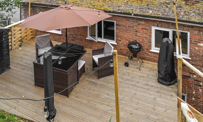 This semi-detached, two-bedroom property is a unique blend of old-world charm and modern amenities, providing guests with a comfortable and memorable stay. Upon entering the property, you will be greeted by an open-plan kitchen and living area on the upper floor, featuring handmade countertops crafted from recycled scaffold boards. The original pine floorboards from the early 1900s, when the building served as a fishing storage shed, are also on display. The living space is complete with a wood burner, providing a warm and inviting ambiance for those cold winter nights. Downstairs, you will find two bedrooms. The main bedroom boasts a kingsized floating bed under a feature wall made from recycled pallets. The second bedroom features two single zip-link beds that can be converted into a super kingsize, offering flexibility for larger groups or families. Additionally, there is a bathroom with a bath and overhead shower, as well as a laundry cupboard with a washer and dryer, making your stay as convenient as possible. If you’re a fan of spending time outdoors, you’ll appreciate the enclosed garden, which features a 24m² deck, perfect for catching some sun or enjoying a barbecue with friends and family. The property also has off-street parking, which is a rarity in Rye, making it even more convenient for guests who plan on driving to the area.