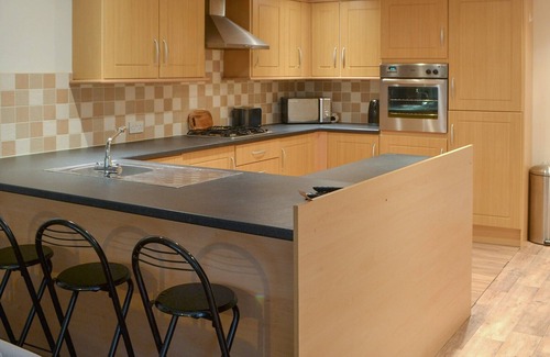 Kitchen area: With electric oven, gas hob, microwave, fridge, dishwasher and washing machine.