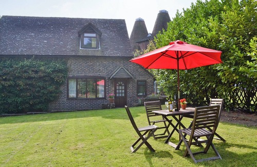 Bedroom 2: 2 x Single (3ft) Beds. Night storage heaters (controlled by owner) October-April, bed linen, towels and Wi-Fi included. Electricity and electric heaters by £1 meter. Travel cot and highchair available on request. Large lawned garden with garden furniture. Private parking for 2 cars. No smoking.. Attractive rural position. Attractive rural holiday location surrounded by fields and country walks. Situated in spacious grounds of the owner’s oast house with access from a quiet country lane up a private road. Ideal for historic houses and NT properties. Easy access for London and the motorway network (M25), the coast and for day trips to the Continent by sea or Le Shuttle. Shops 2 miles, pub 1 mile.