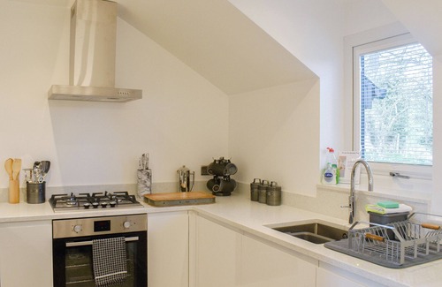 Bathroom: Bath With Shower Attachment, Heated Towel Rail, Toilet. Gas central heating, gas, electricity, bed linen, towels and Wi-Fi included. Welcome pack.. Balcony. Private parking for 2 cars. No smoking.. Kinneret Apartment is a newly refurbished first floor apartment with magnificent views across Silsden and the Yorkshire countryside. Newly built in 2021, this gorgeous apartment has an open plan living area with a stylish electric fire to cosy up next to on chillier nights and bi-folding doors leading out on to the private balcony which is the perfect spot for soaking up some sun with a glass of wine. The kitchen is well-equipped including a Quooker boiling water tap, dishwasher, and washer/dryer plus a breakfast bar where you can enjoy your morning coffee while watching the deer through the window. There is a large double bedroom with an en-suite shower room as well as a twin bedroom and family bathroom making this the ideal retreat for couples, families, and friends.