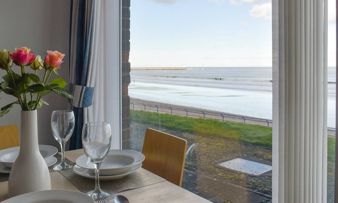 Shower room: With shower cubicle, shower seat, toilet and heated towel rail.. Gas central heating, electricity, bed linen, towels and Wi-Fi included. . Enclosed rear garden with patio and furniture. Bike store (shared). On road parking. No smoking. Please note: No children under 10 years old. There is a promenade and fenced sea wall to front of the property.. Spittal is a small picture seaside village sat on the southern bank of the river Tweed with the historic walled town of Berwick-upon-Tweed on the other side offering great amenities activities to enjoy. The property is set on the promenade with direct access onto the promenade and long sandy beaches, children’s play park area and Splash Park. Enjoy the commanding views of the pier and lighthouse Spittal promenade beach and on a clear day Holy Island with wildlife including dolphins, seals, and numerous seabirds frequently seen from the large windows. Spittal is a great location for a holiday by the sea with a number of pubs, shops and supermarkets all within easy reach by car, or the local bus service which stops a few yards outside the property.