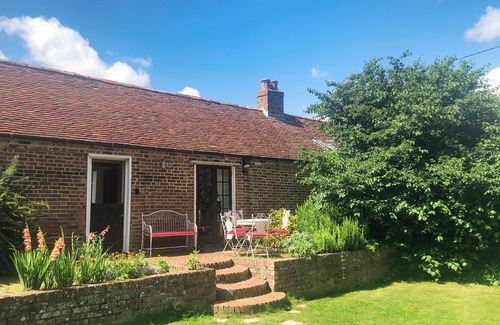 This characterful and charming Grade II listed Kentish getaway is hidden in beautiful countryside, and enjoys a sunny private patio and enclosed garden.. 4 steps to entrance.