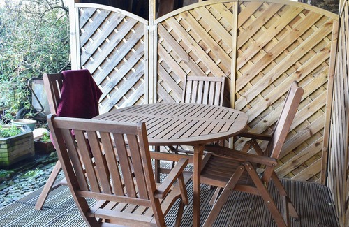Bathroom: With shower over bath, toilet and heated towel rail. . Gas central heating, electricity, bed linen, towels and Wi-Fi included. Highchair.. Private parking for 1 car. No smoking. Please note: There is a step in the garden.. Meadowbank Lodge retains a lot of its original cottage feel, together with all of the modern conveniences that you would expect to find at home. Walking into the large open plan living space, you will find generous seating for four people at both the dining table and in the living area. A double bedroom and a twin bedroom can be found on the first floor as well as a fully tiled family bathroom with shower over bath.