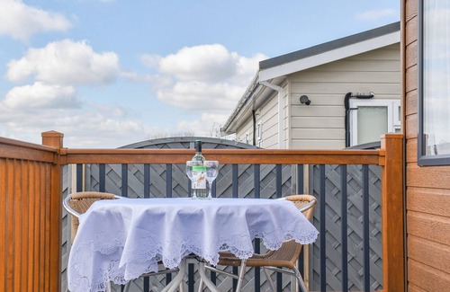 Shower Room: Cubicle Shower, Toilet. Gas central heating, gas, electricity, bed linen, towels and Wi-Fi included. Welcome pack. Front garden with terrace and garden furniture. 2 small dogs welcome. Private parking for 2 cars. No smoking. Please note: There are fishing lakes in the grounds. . This light and spacious, two-bedroom, newly-built lodge is situated on the beautiful Stonham Barns Leisure Park, which is set in 110 acres of picturesque countryside. The master bedroom has a kingsize bed with en-suite toilet, a further bedroom has twin beds, and there is also a shower room. There is a fully fitted kitchen, and the living room offers the perfect place to sit and read, watch TV or play family games. Outside is a large terrace area which is fenced off and is the ideal place to sit and relax with a book and your favourite tipple.