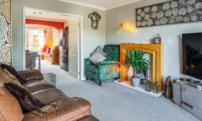 Bathroom: Bath With Shower Over, Toilet. Gas central heating, electricity, bed linen, towels and Wi-Fi included. Travel cot and highchair. Garden with sitting-out area, garden furniture and barbecue. Private parking for 4 cars. No smoking.. Escape to this charming, two bedroom holiday house in the heart of Staffordshire, perfect for a family or a group of friends. With a cosy ambiance and modern amenities, it’s your gateway to a memorable holiday. Featuring two tastefully decorated bedrooms, ensuring a good night’s sleep for up to four guests, with soft linens and comfortable mattresses to guarantee a relaxing rest. To finish the first floor is the family bathroom with shower over bath. On the ground floor there is a spacious and open plan living and dining area, perfect for you all to gather and spend some well overdue quality time together. The living room has comfortable seating, a gas fire and a 72" Smart TV, and the dining area comfortably seats all four guests, not only a great spot for dining but also playing games over a glass of wine. The kitchen has all the essentials you should require, plus there is a utility room. To the rear of the property there is a wonderfully landscaped garden with outdoor furniture for a little slice of tranquillity.