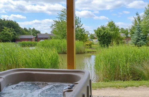 Bathroom: Bath With Shower Over, Heated Towel Rail, Toilet. Gas central heating, electricity, bed linen, towels and Wi-Fi included. Travel cot and highchair. Decked area with sitting-out area and garden furniture. Hot tub for 4 (private). Fishing on-site (free of charge). Private parking for 2 cars. No smoking. Please note: The decking leads out onto a lake.. Set alongside a fishing lake, and with its own private hot tub, this beautiful lodge is on a quiet park, with a golf course next to it, which has a bar and restaurant. The lodge has two ground floor bedrooms, and the living room has a mezzanine with a double sofa bed for a further two guests. Lincoln is close by with its cathedral, castle and the Magna Carta visitor centre, which are all worth visiting. There are many shops, bars and good restaurants to be found in the Bailgate area. Newark Showground, which is famous for its huge International Antiques and Collectors Fairs, as well as many other events, is a 10 minute drive. Lincolnshire Showground is about a 15 minute drive away. Shop 1 mile, pub and restaurant ¼ mile.