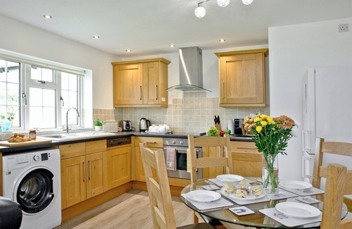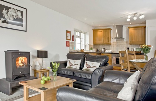 Inside, the open-plan living space welcomes you with a fresh and bright atmosphere, offering a great sense of togetherness for you and your loved ones. Complemented by a cosy wood burner for you to snuggle up in front of while catching up on your favourite shows or reminiscing over the day’s adventures. On those warmer evenings, bring a sense of the outdoors in by opening the French doors and letting in the summer breeze. The kitchen provides all you may need in the way of cooking facilities, creating a great home-from-home feel by also including modern amenities for your comfort. Why not enjoy a meal al fresco? Or simply step outside onto the decking area and enjoy your morning coffee or evening glass of tipple, and at the end of your day return back to one of the comfortable bedrooms for a relaxing night’s sleep, both with their own en-suite for convenience.