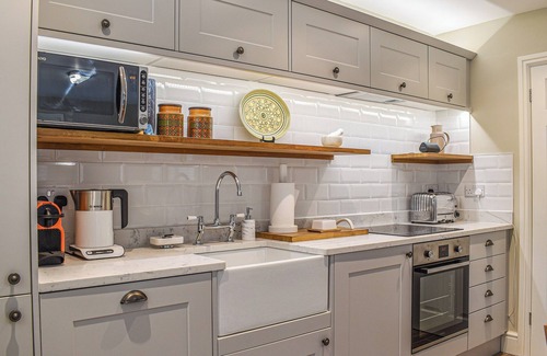 Bathroom: Bath With Shower Over, Heated Towel Rail, Toilet. Gas central heating (underfloor in shower room), electricity, bed linen, towels and Wi-Fi included. Travel cot and highchair available on request. Welcome pack and doggy extras. Enclosed garden with garden furniture and small barbecue. Private parking. No smoking.. This detached property was built in 2021 to a very high standard with bespoke furniture and underfloor heating downstairs. The property itself is fitted out to make sure you feel at home whilst offering the luxurious holiday you all deserve. Located next to the owner’s home, it is a lovely spacious house with private secluded garden, ideal for an evening BBQ and drinks.