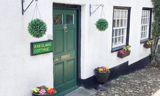 Bathroom: Roll Top Bath, Cubicle Shower, Heated Towel Rail, Toilet. Oil central heating, electricity, bed linen, towels and Wi-Fi included. Initial logs for wood burner included. Welcome pack. Enclosed garden with patio, garden furniture and BBQ. Private parking for 1 car. No smoking. Please note: There are 6 steps in the garden, holidaymakers only.. Where the River Exe meets Winn Brook, in a pretty valley setting just north of Dulverton, you will find Karslake Cottage. Fully renovated to a high standard in 2021, this beautiful semi-detached property sits in the heart of the village of Winsford, considered to be one of the prettiest in Exmoor. Retaining many of its original features and stylishly presented throughout, it is an ideal location for enjoying the delights of this lovely area. The ample entrance hall leads to a gorgeous, spacious comfortable living room with oak beams, and an impressive inglenook fireplace housing a wood burning stove which still has the original bread oven in place, the perfect spot to cosy up with a drink and watch a film after a days exploring. Also accessed from the hallway is a utility room and separate toilet. Two steps lead up to the exceptionally well equipped and attractively presented kitchen/dining room boasting a vaulted ceiling, large Aga and Belfast sink. A curved staircase, narrow in parts, leads up from the kitchen to the galleried landing where one step down takes you into the stylishly presented spacious double bedroom. Along the landing, one step down is a further attractively furnished double bedroom, and a stunning bathroom with a fabulous roll top, claw footed slipper bath plus separate shower cubicle serves both rooms. Accessed from the kitchen is the pretty south facing tiered garden, with seating on both levels, fully enclosed and with a patio area plus barbecue.